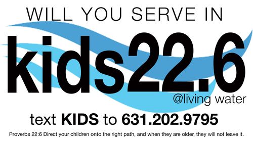 We call our children's ministry "kids 22.6" which comes from Proverbs 22:6 that says "Direct your children onto the right path, and when they are older, they will not leave it." So what we're doing is sowing seeds of live into the lives of children.